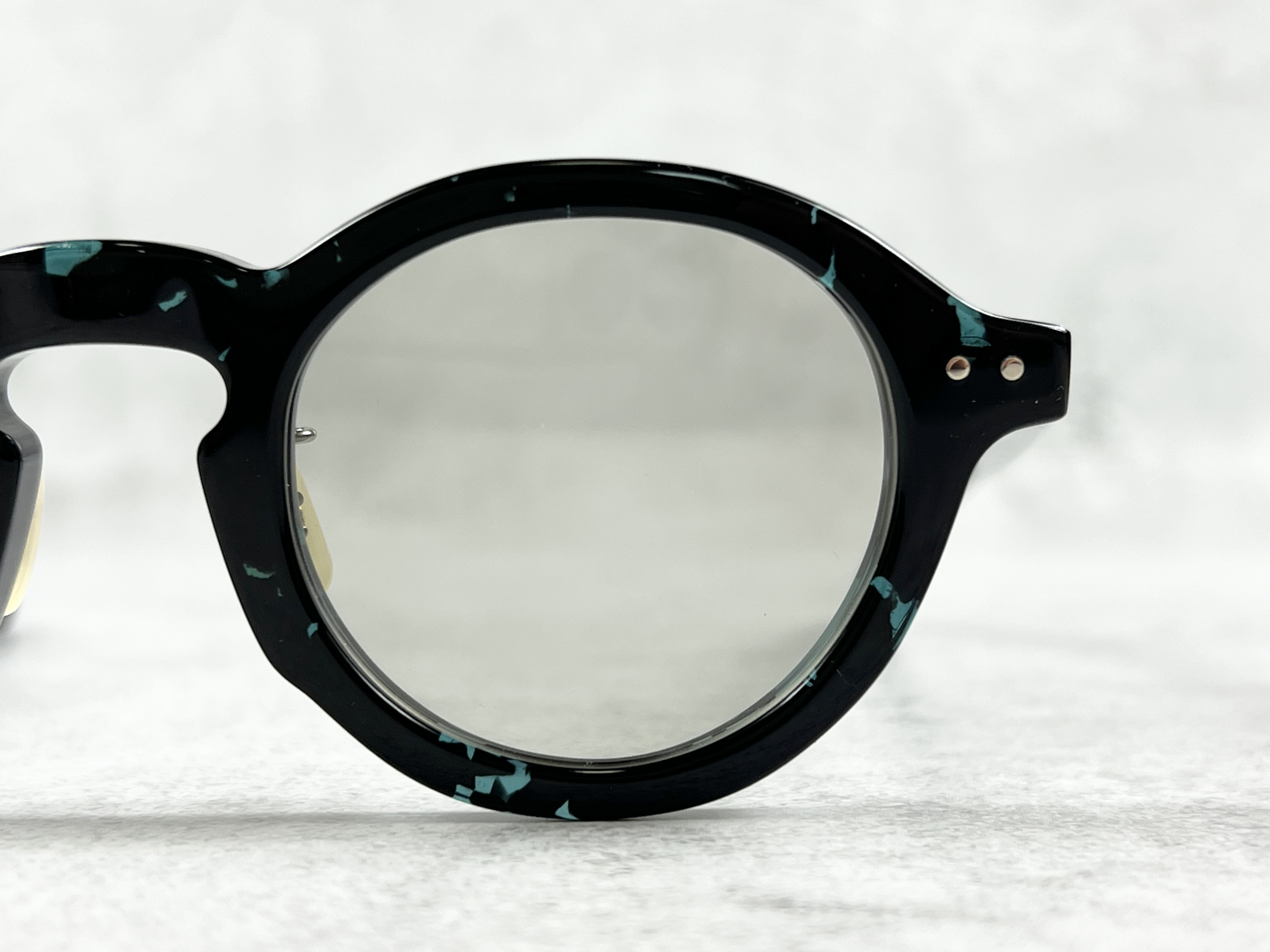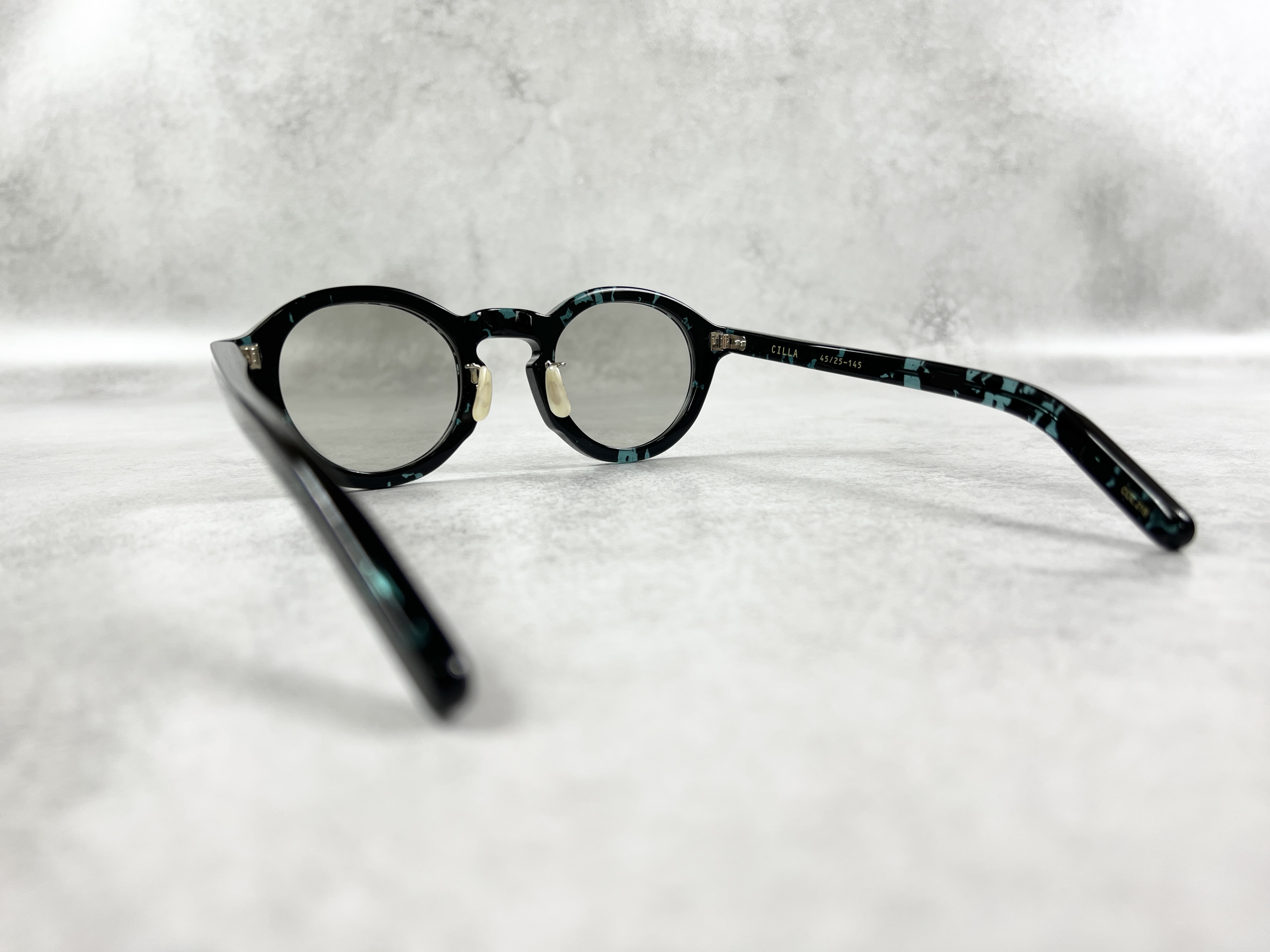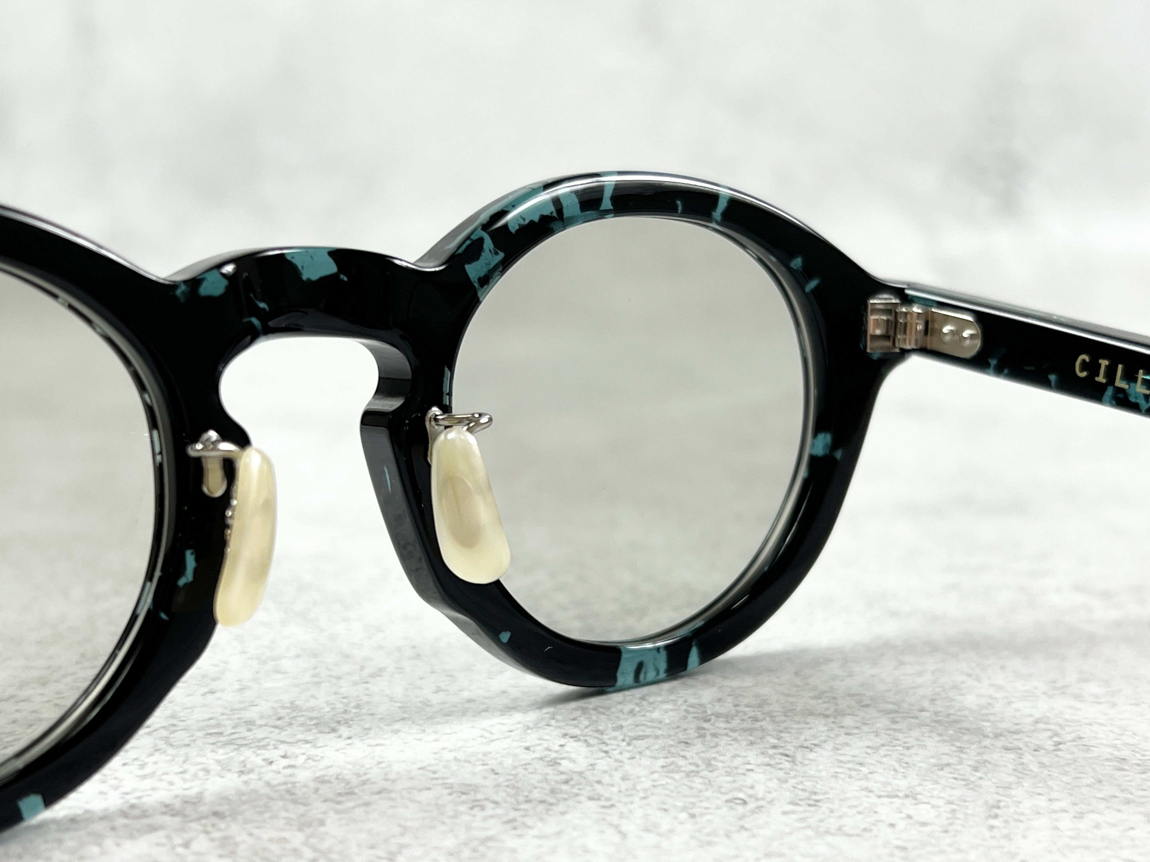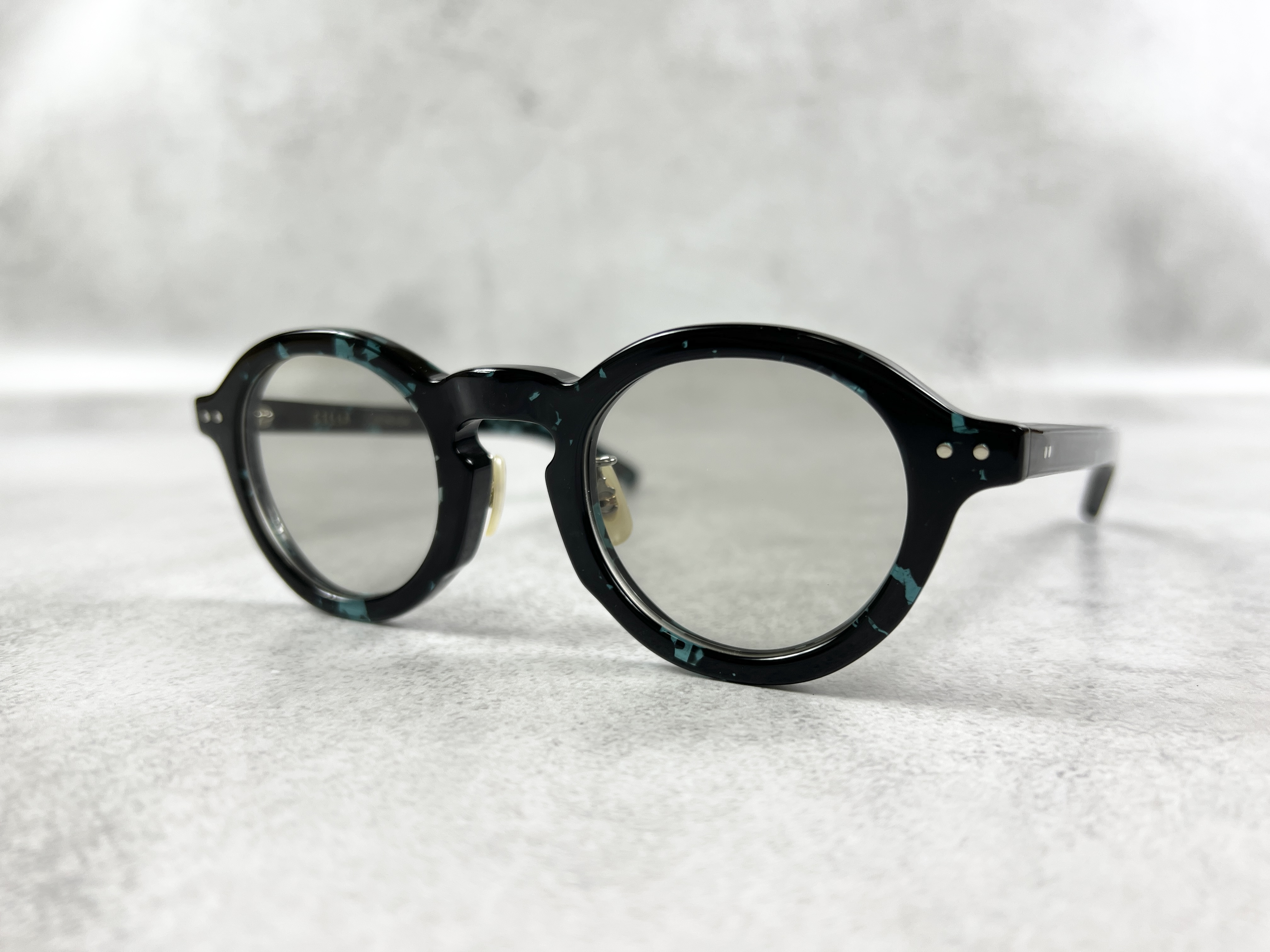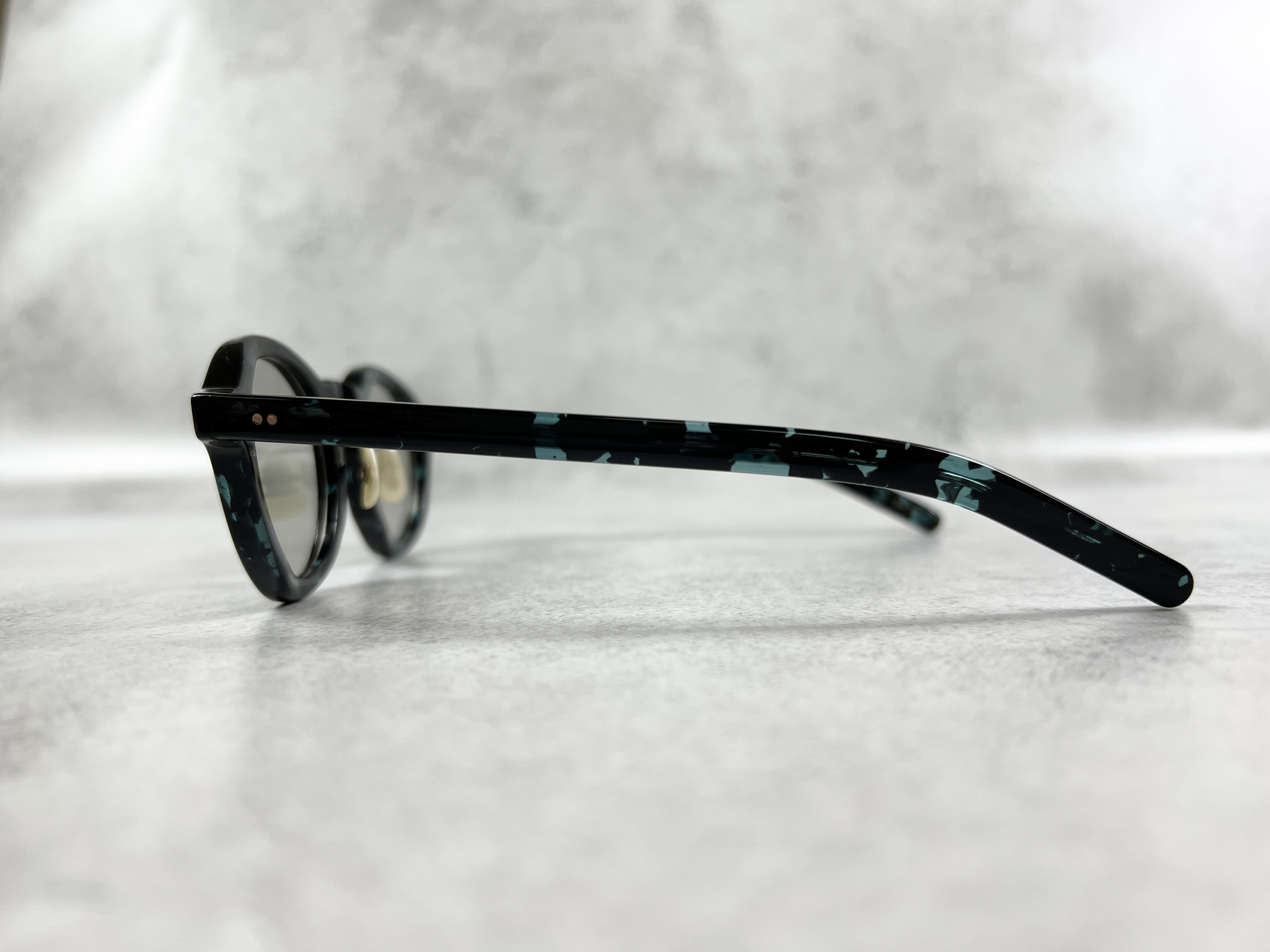「ENALLOID」のフィルターを通しデイリーユースにのっとった色使い、タフな着用を実現するダブルピンのクリングスパーツに加え、恵那眼鏡が誇る磨きの美しさが際立つ6㎜厚のキューブ・テンプルを組み合わせてます。