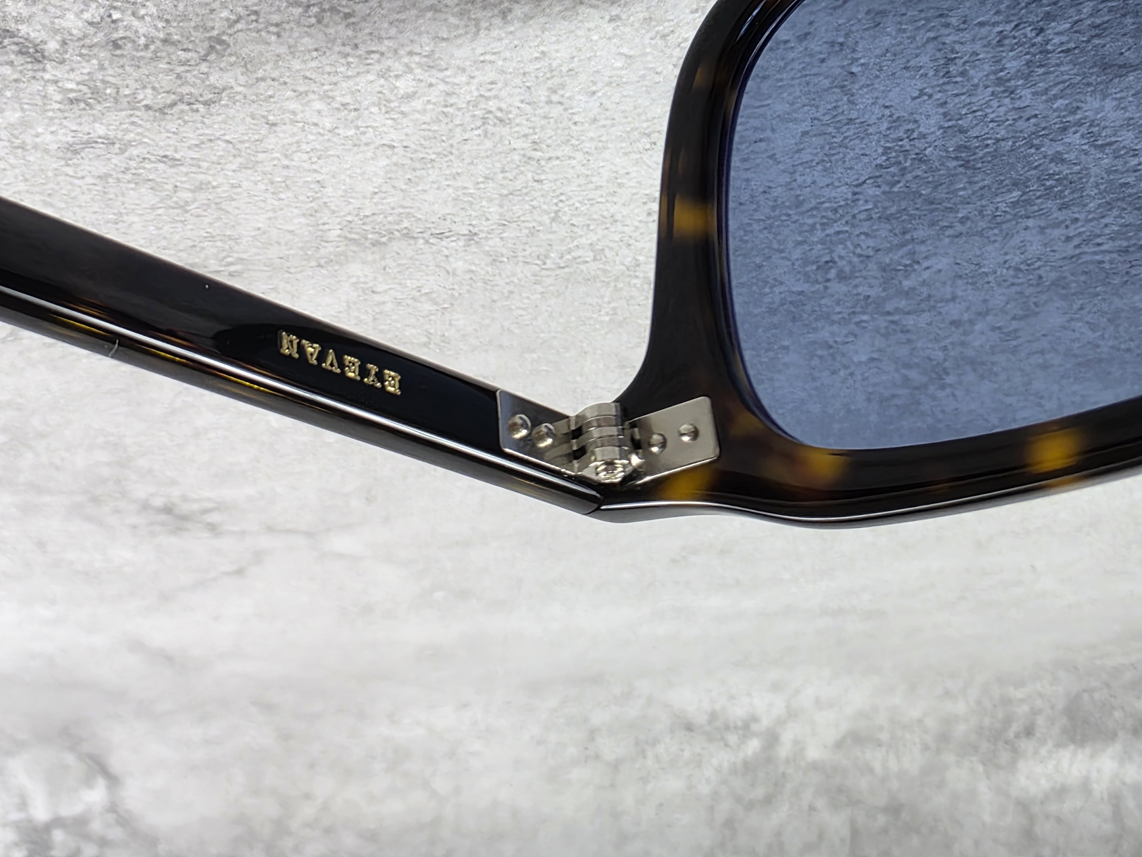 ヨロイにはサンプラチナ製の飾り丁番を合わせ、シンプルにまとめた。クラシックなフォルムにストリートの空気感を掛け合わせる、EYEVANが繰り返し用いてきたデザインアプローチのひとつ。