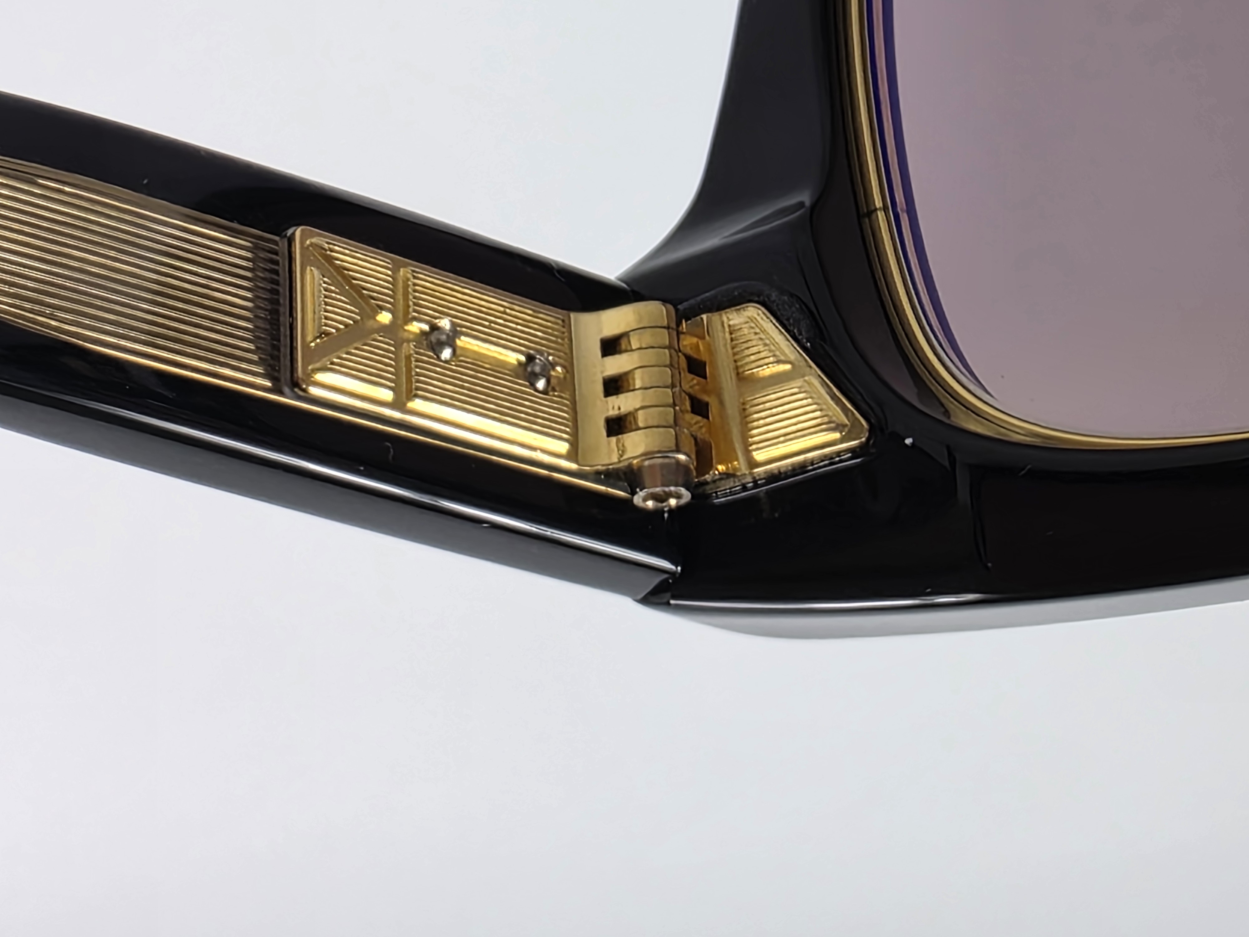 オリジナルで作成したメタルパーツは、剛性の高い七枚駒ヒンジとテンプル芯を採用。