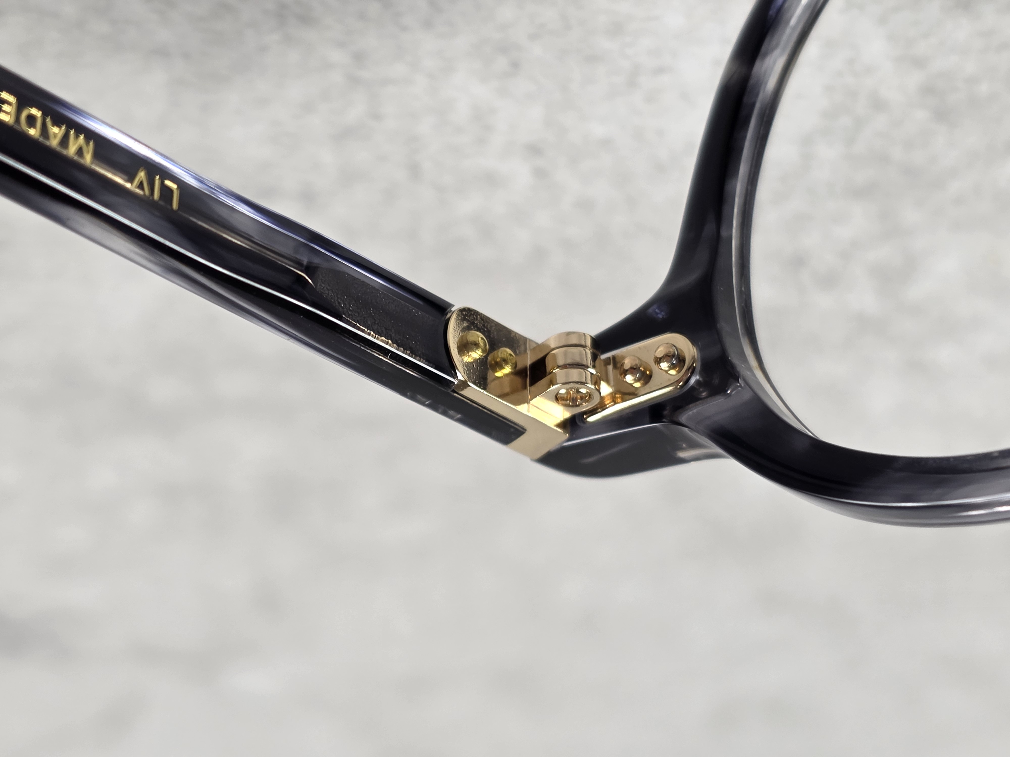 テンプルにも手の込んだ、L字丁番を採用。
