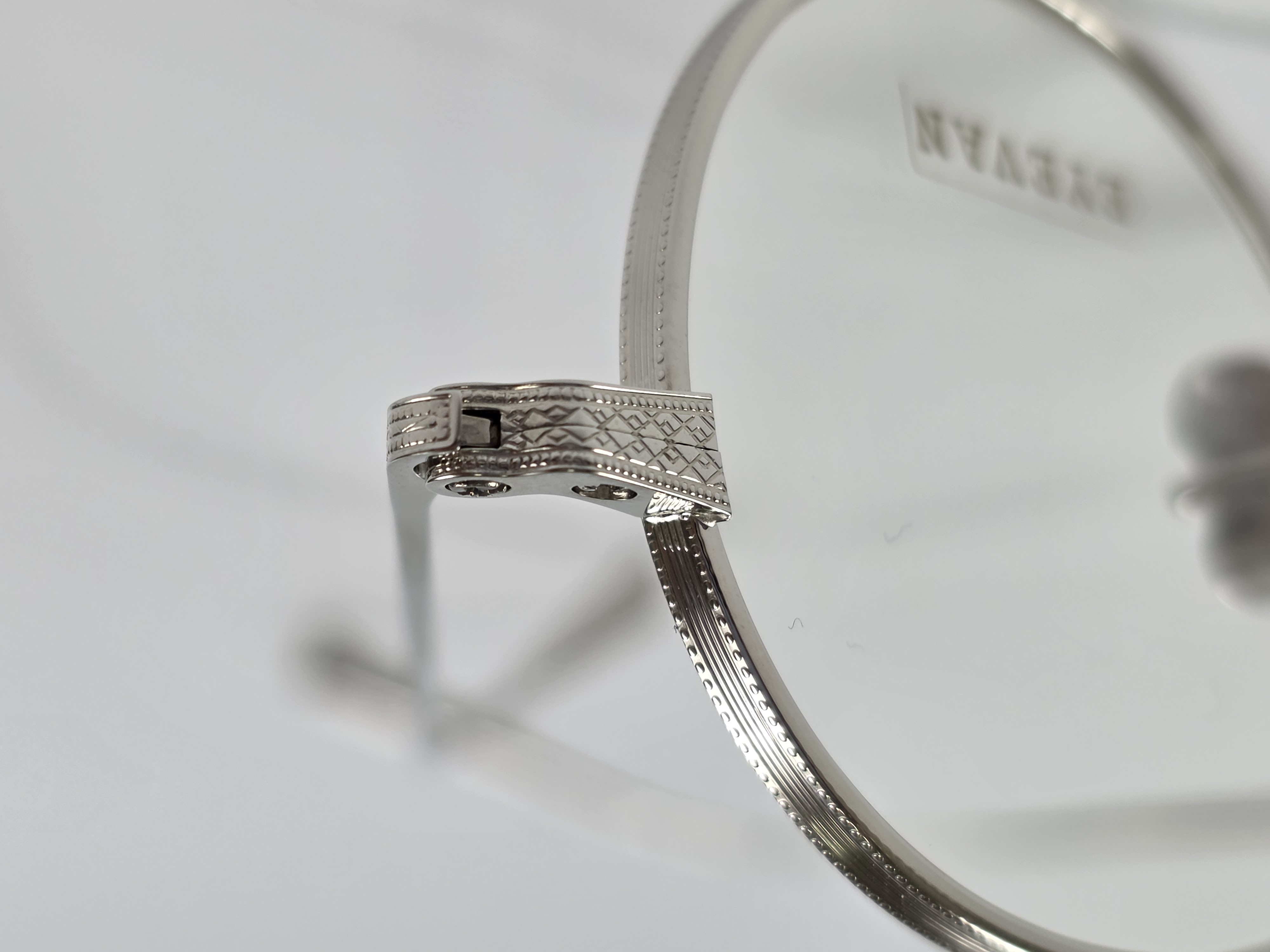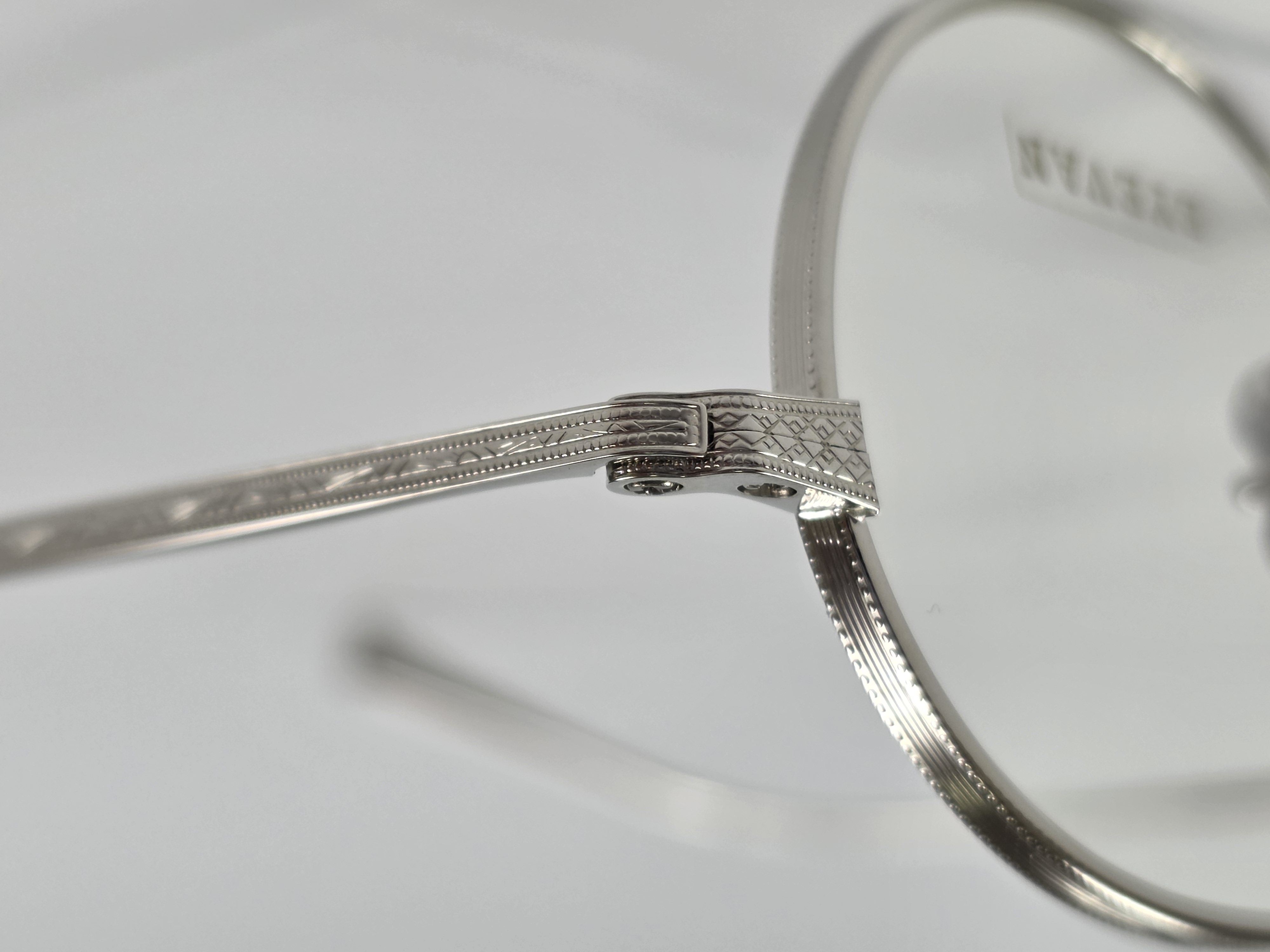 職人の手掘りマスターにより丁番の内部まで装飾されたヨロイの上に、繊細な模様の入ったテンプルが被さる「被せ智」の構造内にはストップ丁番 機能を有し、ヴィンテージのもつ様式美に現代の技術を融合。