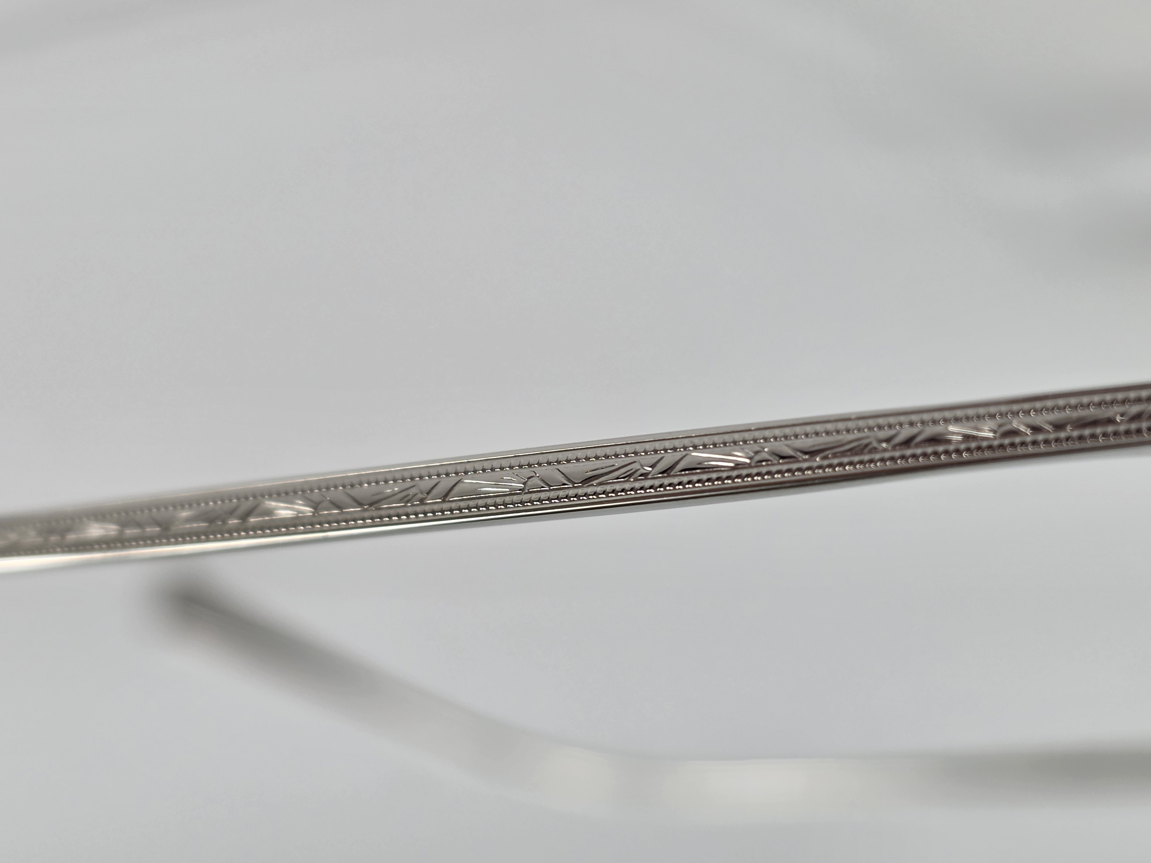 その周りにも丁寧に施された彫金、柔らかい曲線を描いた太いブリッジ。