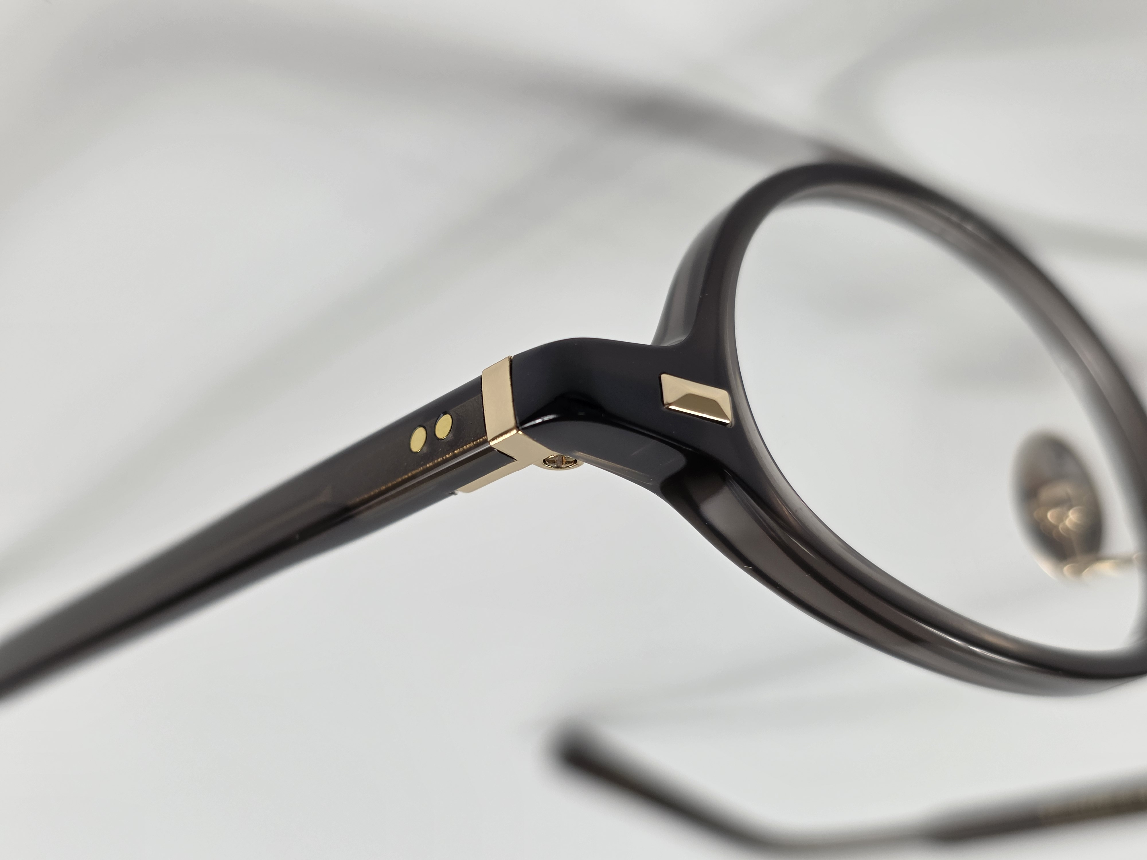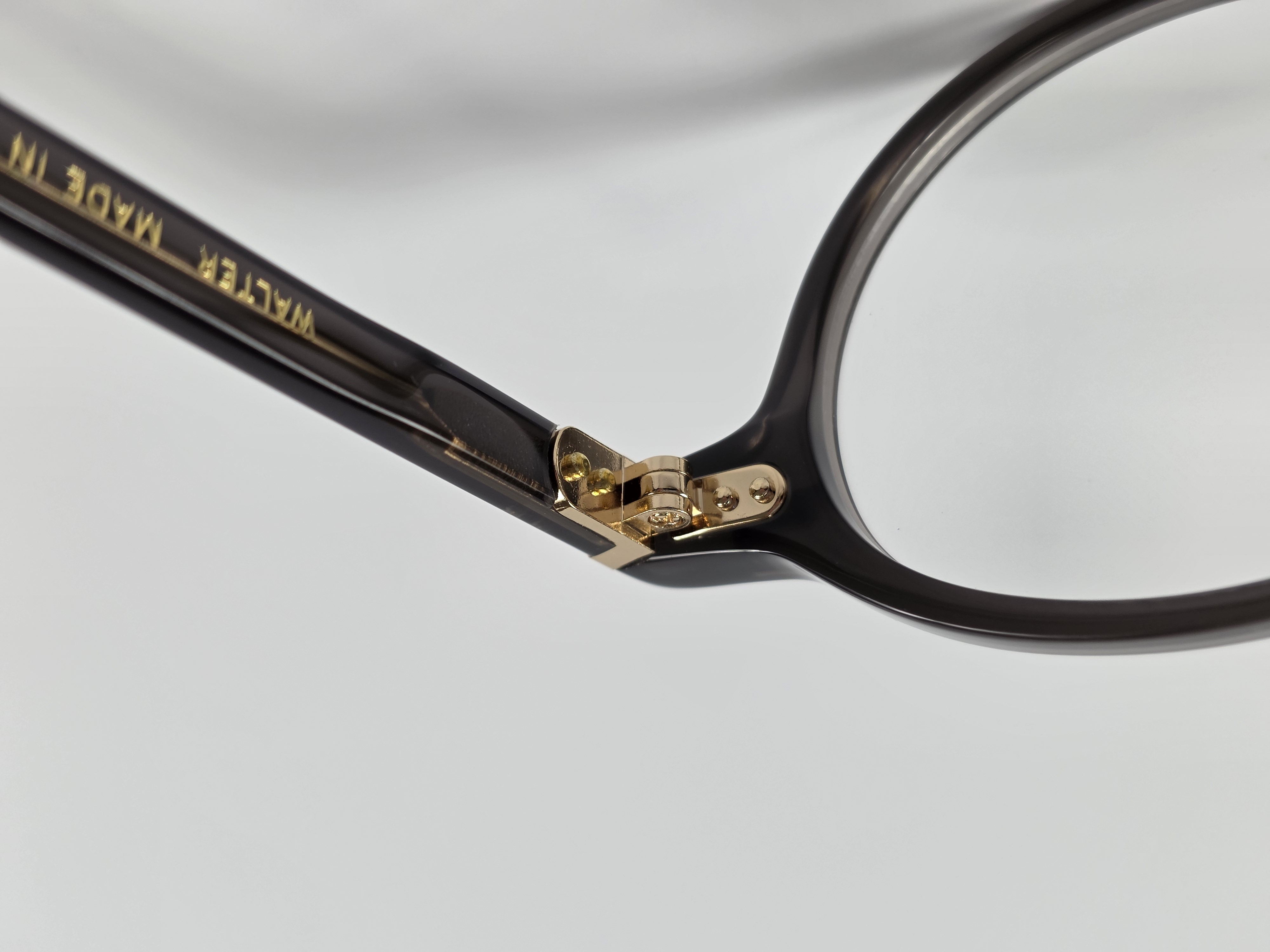 テンプルにも手の込んだ、L字丁番を採用。