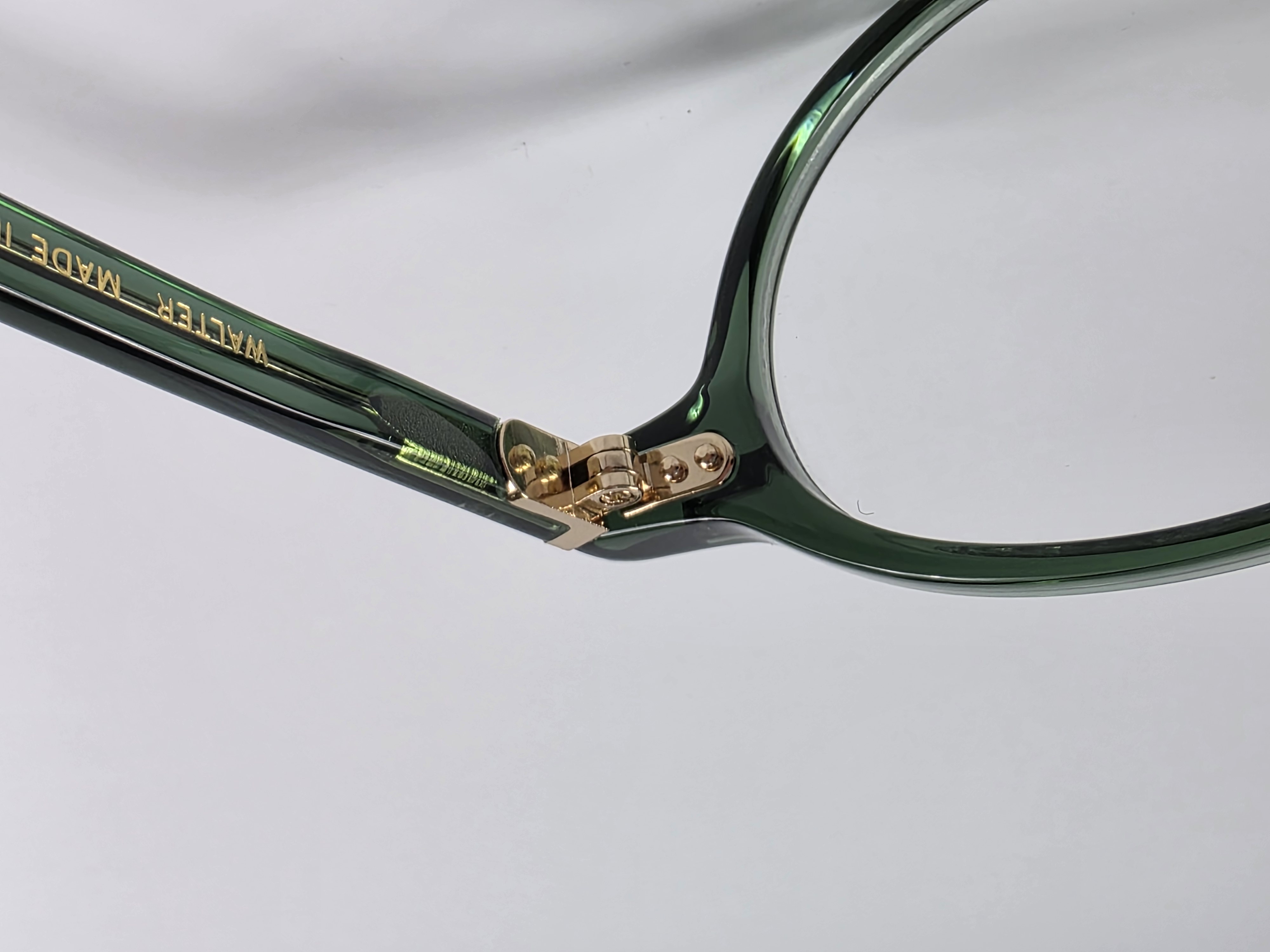 テンプルにも手の込んだ、L字丁番を採用。